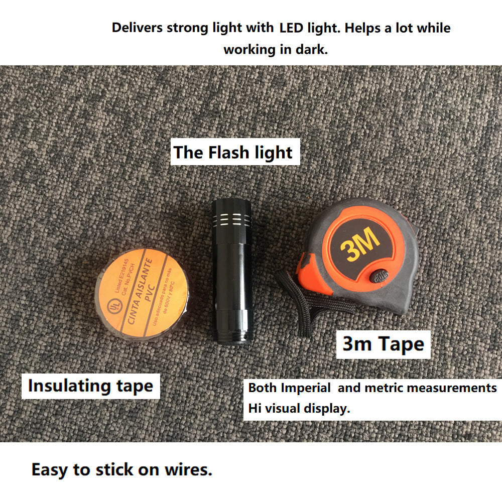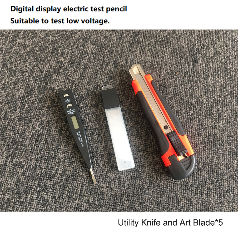 Variety of Tool Combination: The set includes 8 Allen wrenches, a precision screwdriver, a 3-meter measuring tape, a 6" long nose plier, a universal wrench, spare blades, an LED flashlight, an electronic tape, screwdrivers, a test pencil, a nail hammer, an art cutter, and a toolbox, catering to multiple usage requirements.