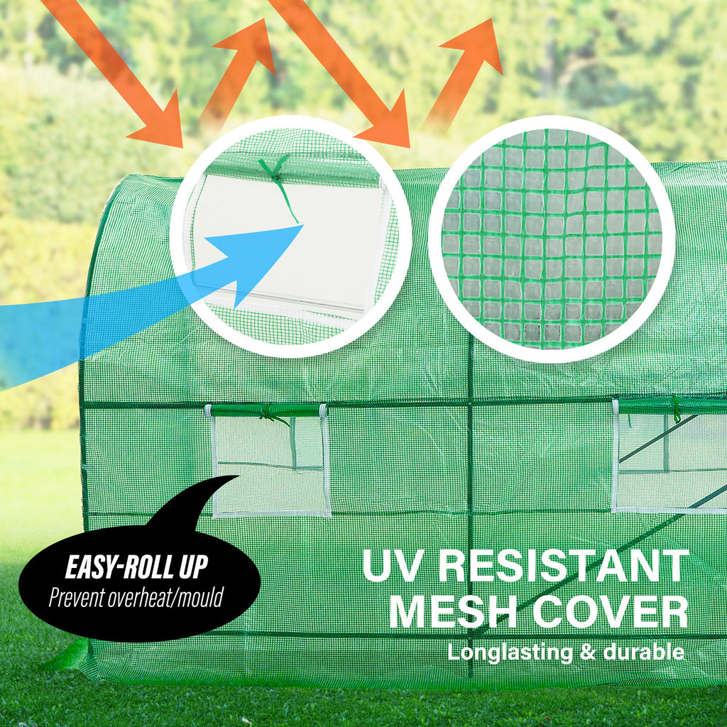 The cover is made of high-quality UV resistant PE mesh is great to allow light inside the greenhouse and combined with the arc roof, it retains the warmth inside very efficiently. The easy roll-up windows on the sides allow you to control the temperature inside the greenhouse easily, and this temperature control is very important to provide the best environment to your plants, especially if they are sensitive to temperature.