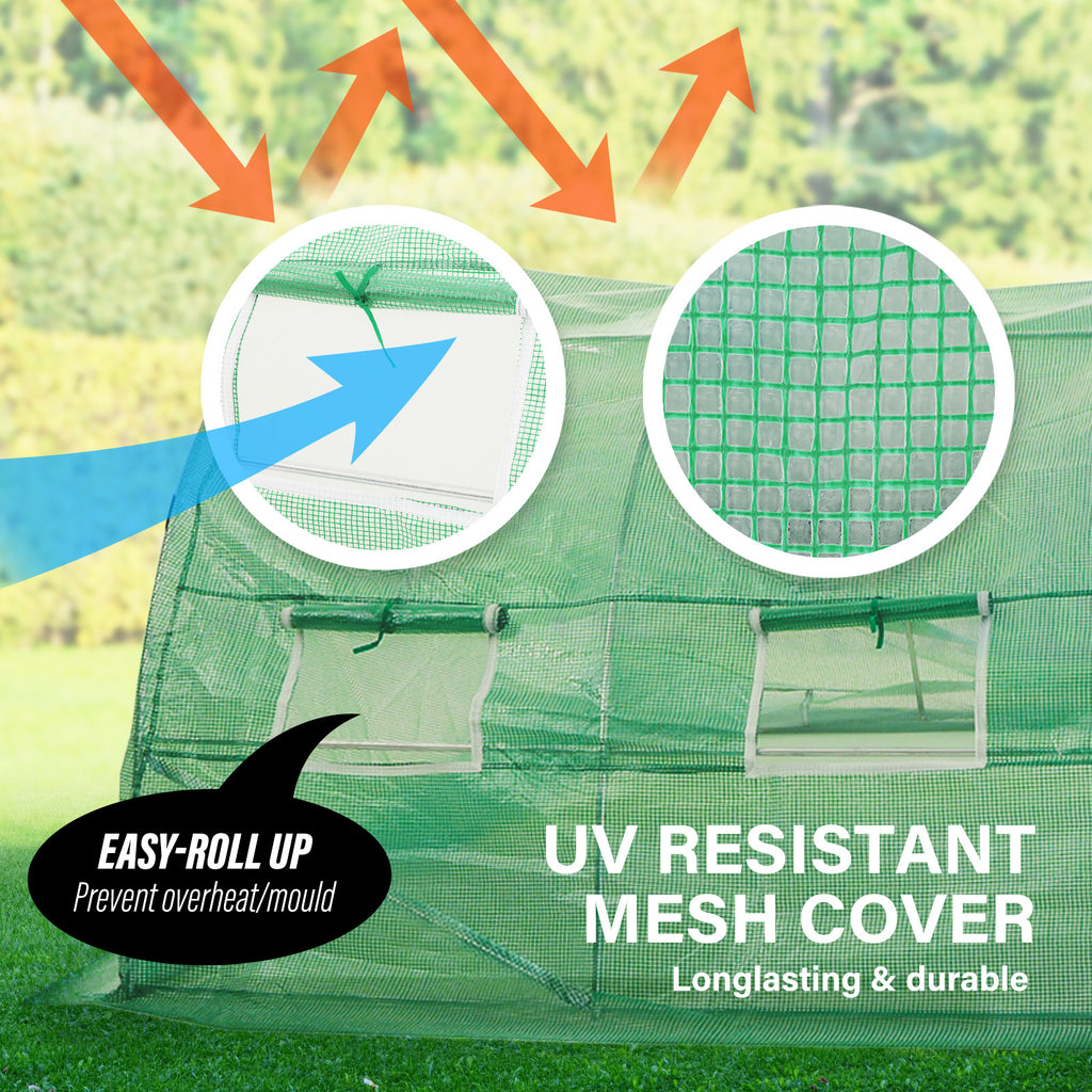 The cover is made of high-quality UV resistant PE mesh is great to allow light inside the greenhouse and combined with the arc roof, it retains the warmth inside very efficiently. The easy roll-up windows on the sides allow you to control the temperature inside the greenhouse easily, and this temperature control is very important to provide the best environment to your plants, especially if they are sensitive to temperature.