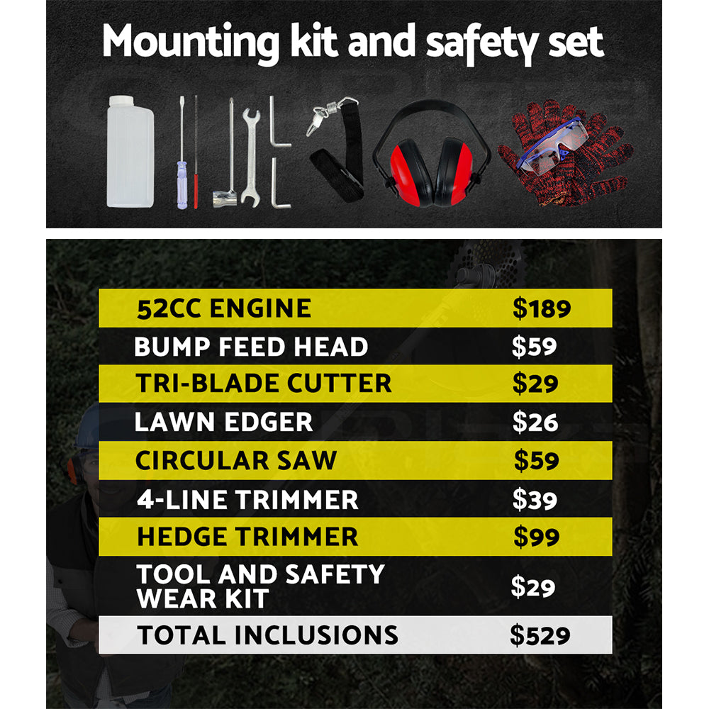 Giantz 62CC Pole Circular Saw Petrol Brush Cutter Whipper Snipper 7-in-1